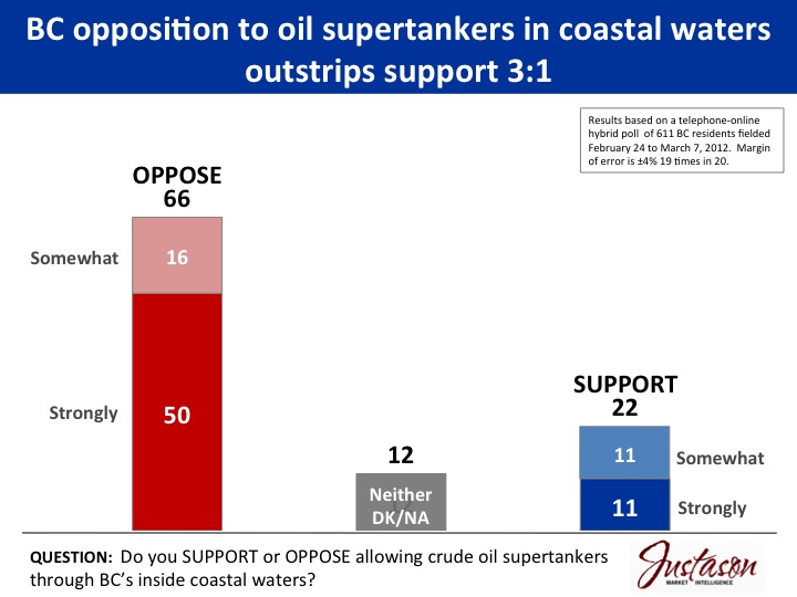 Vancouver, B.C. (Mar 27, 2012) – Most British Columbians are opposed to the Enbridge proposal to transport crude oil through B.C.’s inside coastal waters.